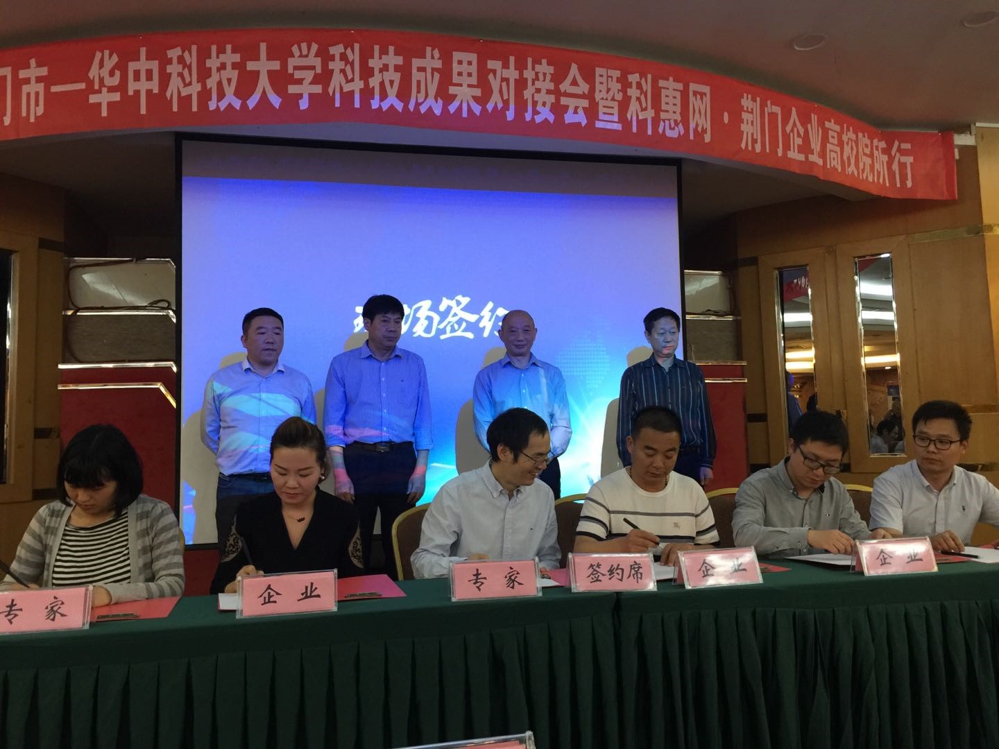此外,经过现场专家的成果推荐,“求贤若渴”的荆门市吉光环保科技有限责任公司总经理兼研发主任姜相勇通过短短10分钟的对接,现场直接与胡辉教授就“脱硫脱硝”项目签订意向合作协议。